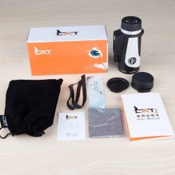 – Đóng gói: Ống nhòm, dây đeo, khăn lau, nắp đậy, túi đựng, hộp đựng