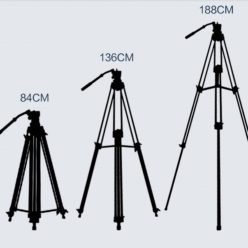 Bộ chân tripod giật cấp 3 đốt được làm từ hợp kim nhôm cao cấp gọn nhẹ, chắc chắn, cho phép tuỳ chỉnh chiều cao từ 84cm lên đến 188 cm